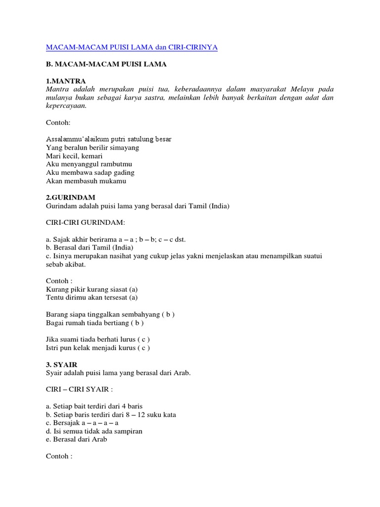 Pada postingan kali ini admin akan meyampaikan ciri pantun gurindam syair dalam puisi lama sebutkan 7 c. Barang siapa mengenal diri, maka telah mengenal akan tuhan yang bahari.